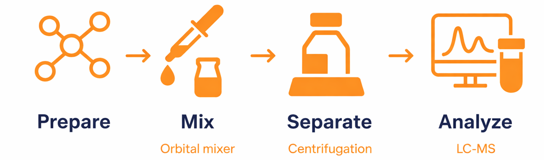 After mixing, centrifuge the solution at 3000 rpm at room temperature for 20 minutes. Carefully transfer the supernatant to a second vial and centrifuge again under the same conditions. From the final supernatant, prepare two dilutions—a high and a low concentration. These samples will be used for LC-MS/MS quantitation against a standard curve. Include an internal standard in the final dilution for analysis.