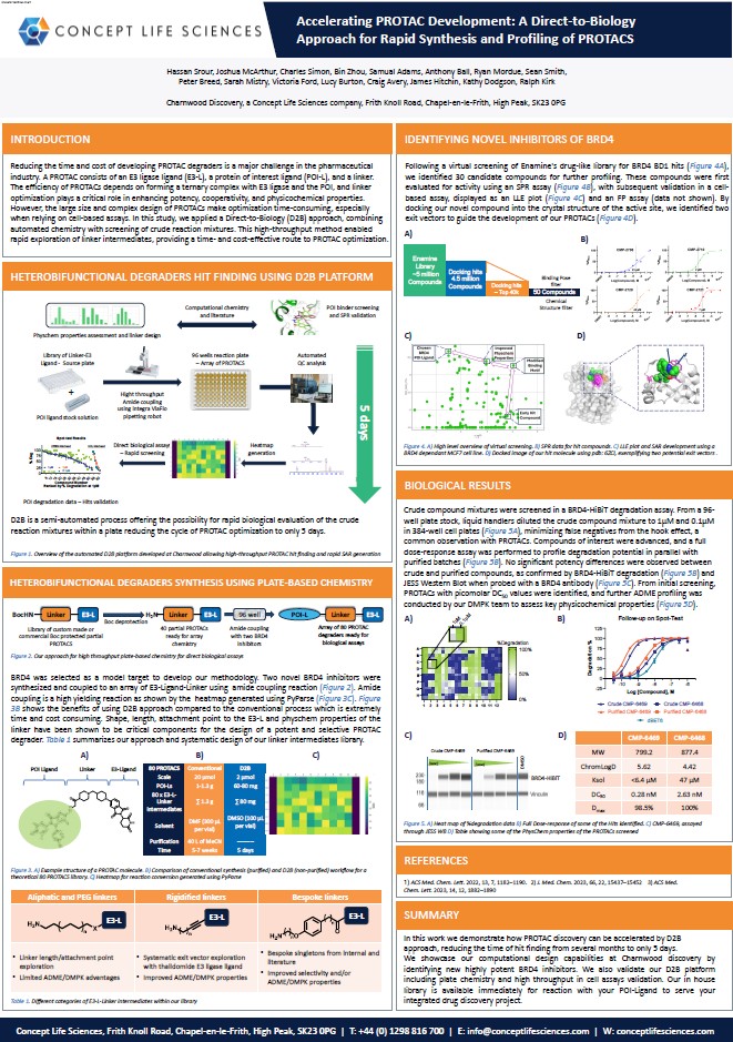 Download our poster Accelerating PROTAC Development: A Direct-to-Biology Approach for Rapid Synthesis and Profiling of PROTACS.